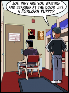 Every month at the Dumbing of Age Patreon there’s two new exclusive bonus strips — one that patrons get to vote on, and another that’s my choice! This month, we check in with JOE, whoever that is! Check out this strip and the backlog of hundreds of previous bonus strips at the Dumbing of Age Patreon!