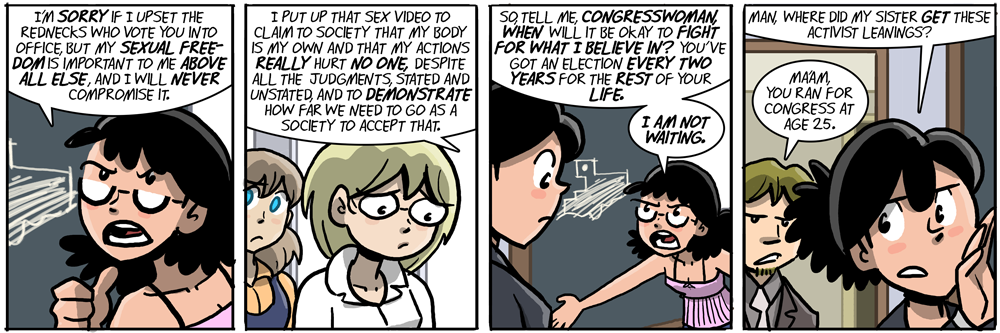 I agree with Roz wholeheartedly. Having said that, it always kind of bugs me in comics when the strip itself is so clearly leaning in one direction.