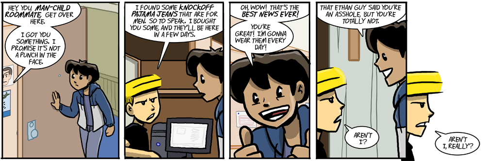 This comic confuses me, as I know from Shortpacked, he’s capable of being nice in his own twisted way.
