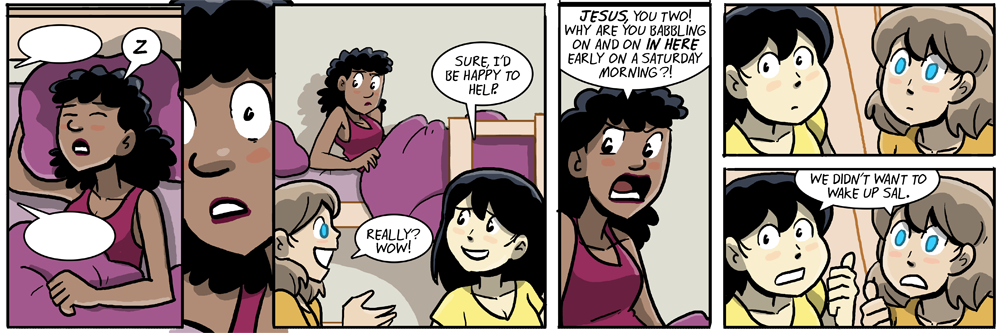 Billie and Joyce hanging out, being friends. Is nice. Although all college students have a sacred right to sleep in on Saturdays. It’s sacred, gosh darn it!