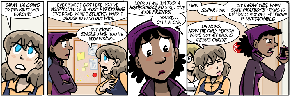 Wait, why is Sarah opposed to Joyce getting laid? I can see an opposition to substance abuse, but this is new. Did Sarah also have a bad experience with premarital hanky panky (and what freshmen hasn’t)?