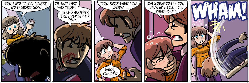 Yup, my thoughts exactly, the next page, the very first panel is Joyce puking on him, in the FAAAAAAAACE.