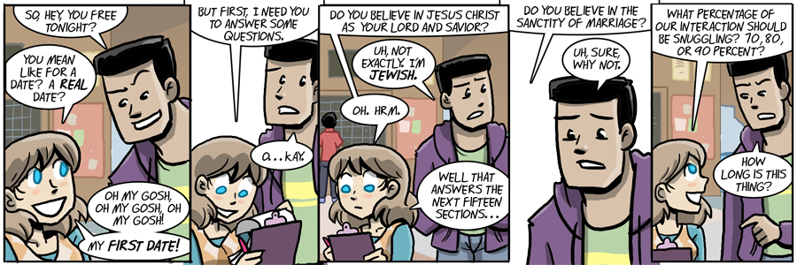 15 questions just to learn what religion he is? That’s kind of excessive. Then again, that clipboard might be longer than any of us suspect.