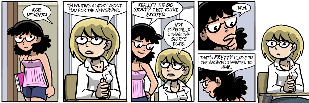 I’m thinking Roz dislikes the fact that sex (specifically, sex between consenting adults) is seen as a moral or important issue. Knowing that the journalism student working on the story thinks the story is meaningless and stupid gives her hope for journalism and how people view sex in the future.