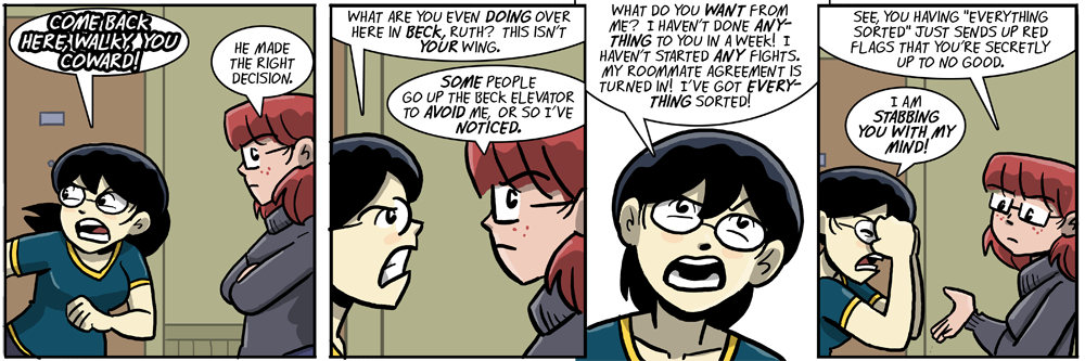 Coward? Why would Walky want to even help Billie right now? All she’s been doing for the last few strips is rag on him. If he wants her help with standing up to people who are hating on her, she needs to quit doing the same.