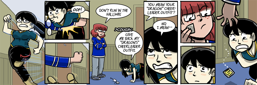 I don’t like her either. This strip is really the one that did it for me. Her list of crimes now includes theft, assault, and destruction of personal property. And she’s using her position as RA and the fact that Billie is a dumb freshman to get away with it. Not good, IMO.