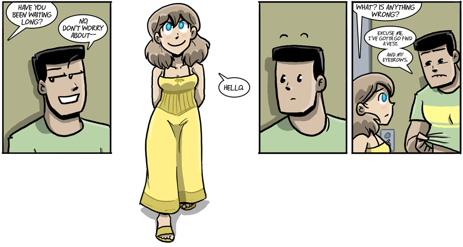 So… does he actually CARE that this could be more than just sex? I mean, if he’s conscious enough to dress up nicer for her… And If so, I honestly didn’t see that comic.