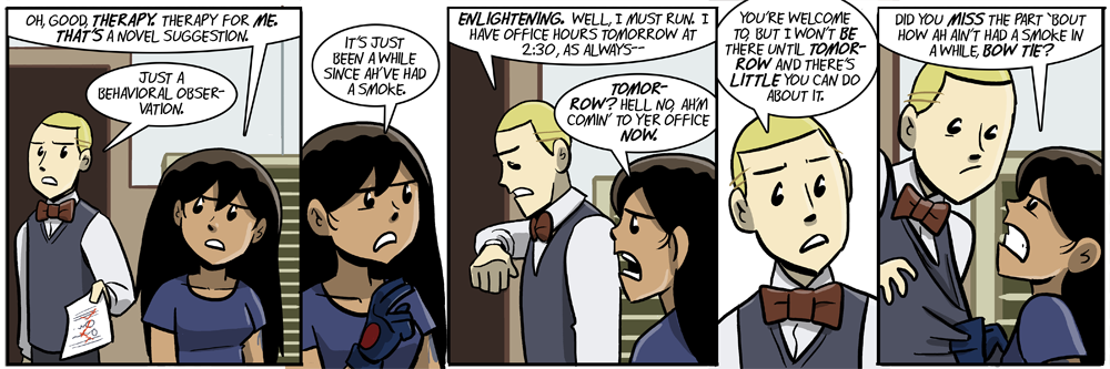 Of course, I got that. She only smokes after sex. Usually she just “jills off” when we’ve seen no obvious partner previously in-comic.
