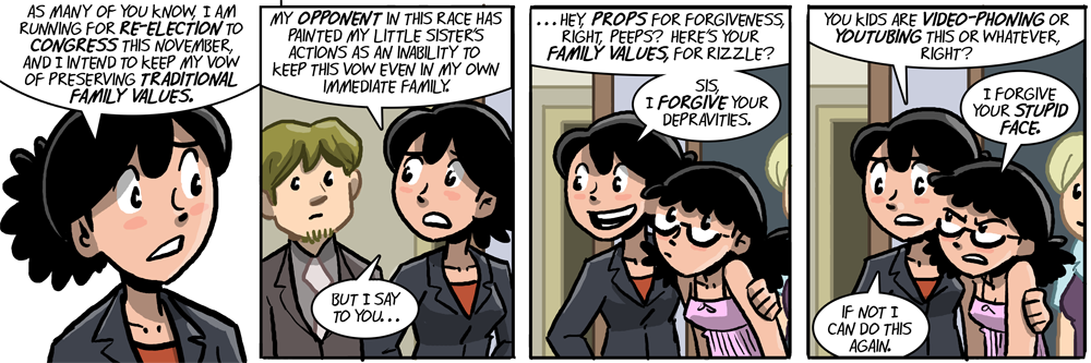 On the 3rd panel: Isn’t that sisterly love?!? How magnanimous of her!