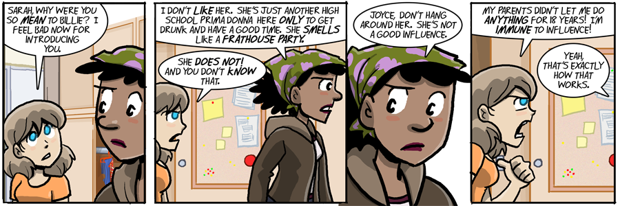 Wow, a DoA strip where I like and respect what Joyce has to say. Sarah has a point, it’s a curmudgeonly point, but a point nonetheless.