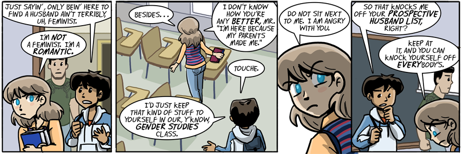 Maybe that’s the PLAN! Dumbing of Age is actually how Head Alien 2 is erasing Machete from continuity! That’s got to be it! THE FATE OF THE MULTIVERSE DEPENDS ON JOYCE AND WALKY GETTING BACK TOGETHER!