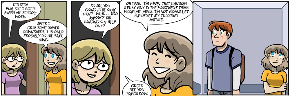 (I didn’t mean Joyce’s discomfort in the edit to be interpreted differently, so assume the same reasons as the original panel. Although she may just be uncomfortable around freckled people in the original panel.)