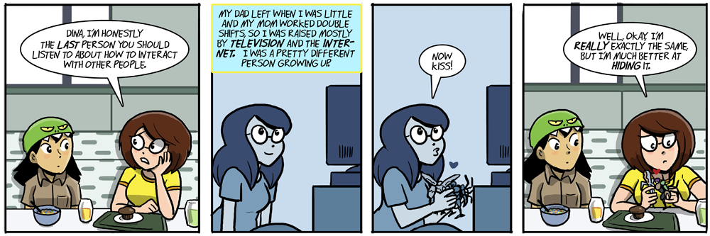 So apparently Blaine is still kind of a dick in this universe because he apparently walked out on Amber as a kid but he’s less of a dick than he was in the Shortpacked influence because at least he didn’t stick around and inflict his toxic influence on her?