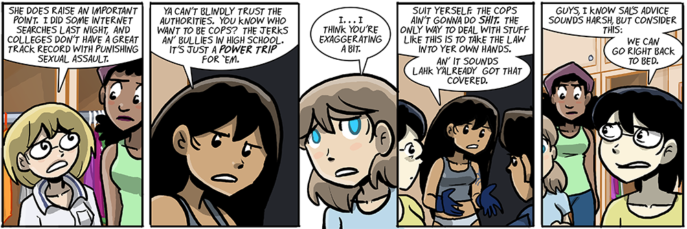 I wrote and uploaded this particular strip 3 weeks ago, and plotted each character’s take on the subject way earlier, so I’m mostly referencing the stuff I’d read about the subject in preparation for this storyline.