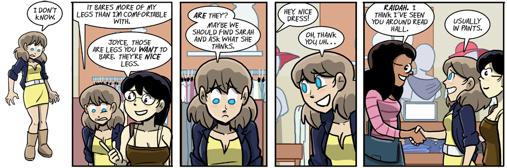 Billie chose . . . wisely. Although, I hope she doesn’t want Joyce to wear those boots with that dress. Buy some nice flats to go with that dress, Joyce!