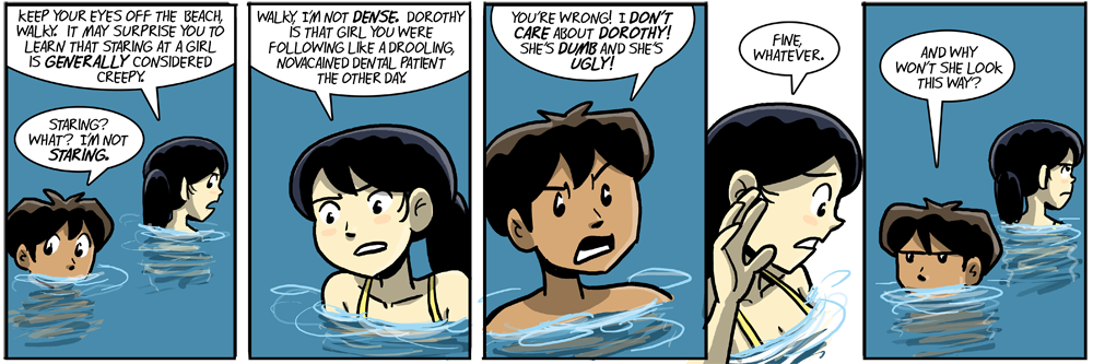 Walky has been confirmed for [url=http://tvtropes.org/pmwiki/pmwiki.php/Main/MagnificentBastard]Magnificent Bastard[/url]. Clearly, he’s just trying to get Billie to go away so he can calculate the best trajectory to splash so that just enough water drops will hit Dotty to get her wet without genuinely upsetting her.