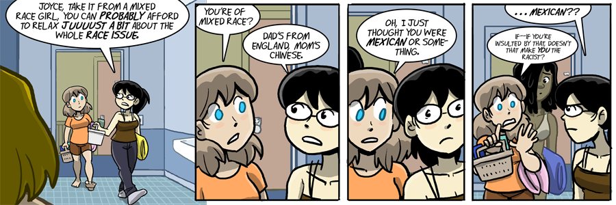 I was in a dorm room next to someone as bad as Joyce in my freshmen year. Was really good friends with a nice guy from India, but assumed he was Mexican. Why? Because the guy was obviously not white or black, therefore Mexican is the default.