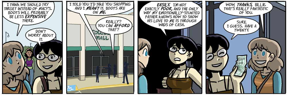 Billie’s popularity in high school is now clear. “There’s the chick who will buy you things for attention! Let’s be her friend!”