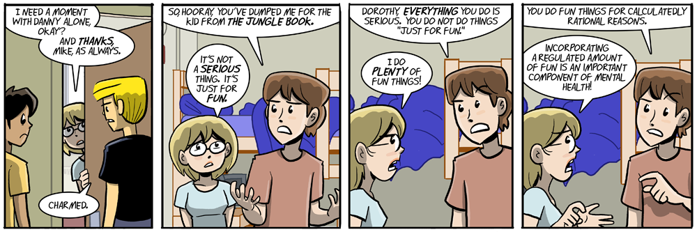 I have this image of Dorothy as a methodical mad scientist who plans out her fun and mental breakdowns to the minute, and I have no idea why.