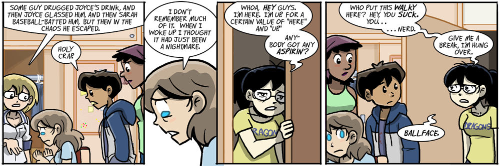 “Walky, stop linguisting! It’s out of character for you! Joyce is seriously residual-traumaing and maybe identity-crisising, and even though we interventioned last night, we’re still going to be responsibling until we’ve helped her through the Kubler-Rossing.”