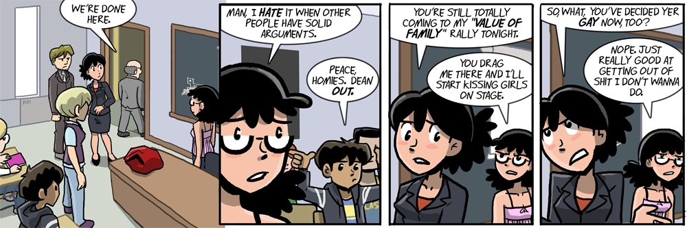 This is for me, Walky’s best moment in the entire strip so far. Now I want to become a Dean just so I can say ‘Peace homies, Dean out’.