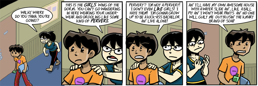I dunno. At 18, immaturity is all about making light of sex, and Walky doesn’t like girls yet and yet likes to act immature. And, as I mentioned, lack of sex life does not automatically mean lack of romantic life.