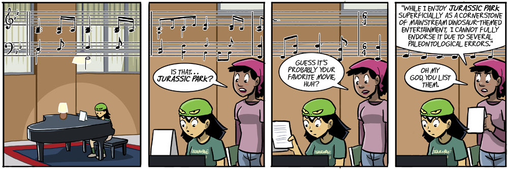 32. “But it’s still your favorite movie, right? It’s not like there’s a better, more paleontologically accurate film that could supersede Jurassic Park? Or, better yet, shut up and move over, I want to play Chopstix for the next eight hours.”