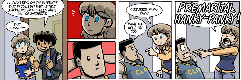 This one’s actually not so much a DoA meme as it is a Joyce meme in general. She was traumatized by footage of pre-marital hanky panky for a rather long time back in the Walky series (I forget where, but it’s rather early, around the time the aliens started showing up.)