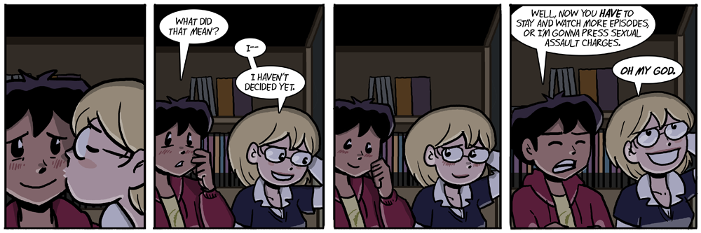 And she seems to be pre-law, so she knows all about the legal ramifications. Or at the very least what a sexual offense charge would mean.