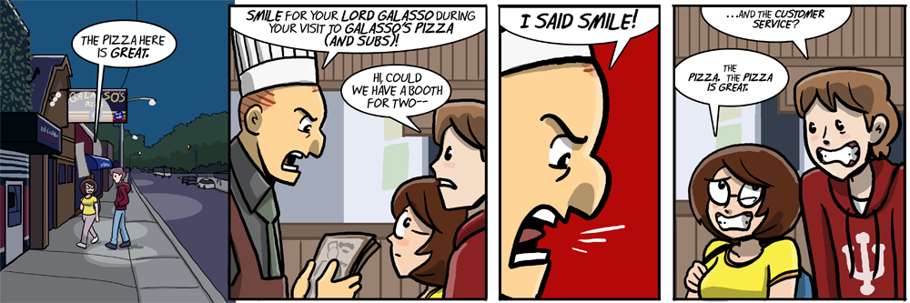 In a college town restaurant, as long as it’s alongside good food at relatively cheap prices that’s served promptly, it’s AMAZING how much psychotic attitude can be included in the customer service.