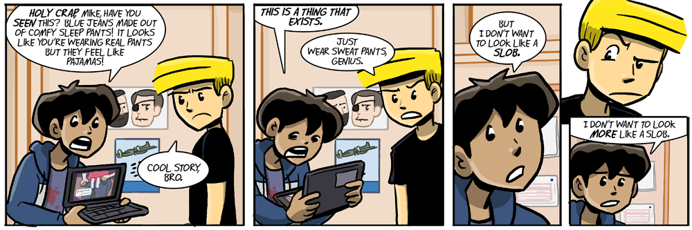 Agreed. I also wear pajama pants and sports shorts. But outside? Jeans or dress pants. It’s practically a law.