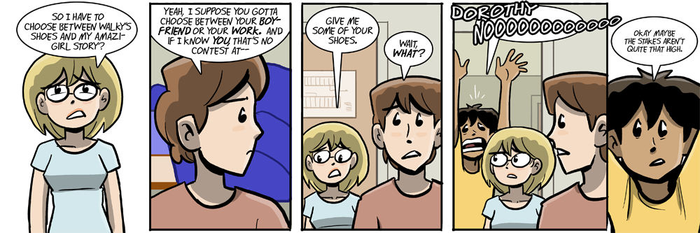 Yes, she did. Dorothy’s made the attempt to get Walky shoes; she now knows that Walky is okay with her advancing her career; and, most of all, she has a lead–she knows that Danny has a relationship with Amazi-Girl. She can now stalk Danny and find Amazi-Girl again. Career? Caramel boyfriend? Done and done.