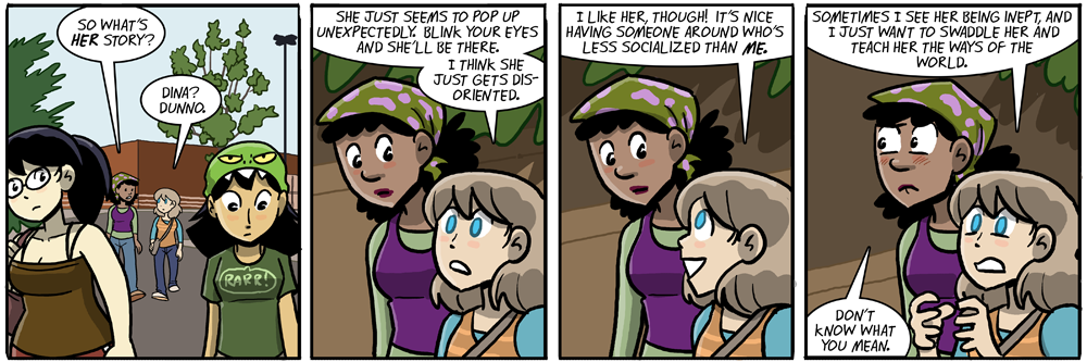 The end of the comic will reveal that Dina was never real and was just a mass halucination brought on by the stress of college life and the desire for someone worse at socializing than themselves.