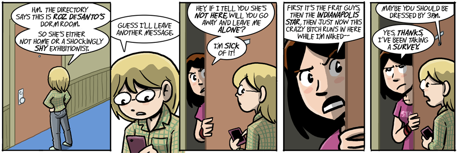 Which is quite funny, because 3 pm can sometimes mean “person is in class.” So Dorothy’s still catching up on that “not everyone has the same schedule” idea college tends to teach. XD