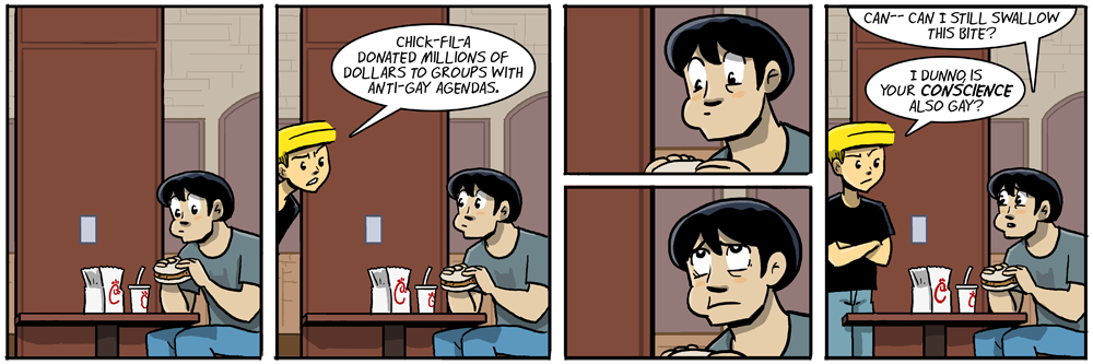 Man, only in a David Willis comic would you read the sentence ‘Is your conscience gay, too?’.