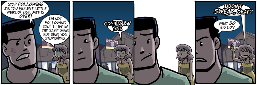 This may date me but the last frame just brings to mind Adam Ants song “Goodie Two Shoes”