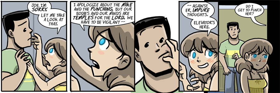 Last panel: That’s one temple for the Lord that ain’t wearin’ a bra.