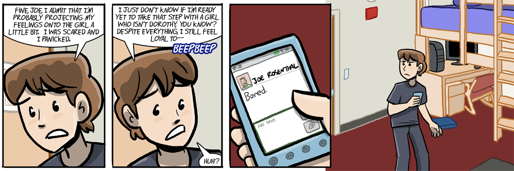 This strip is done for comedic effect, but I assure you Joe in no way speaks for all of us, least of us those who actually remember what Danny went through days ago in-story universe and remember what it means or what it feels like. It’s been four years since my relationship broke apart but I could still tell you the day it happened even if I have gotten over it since.
