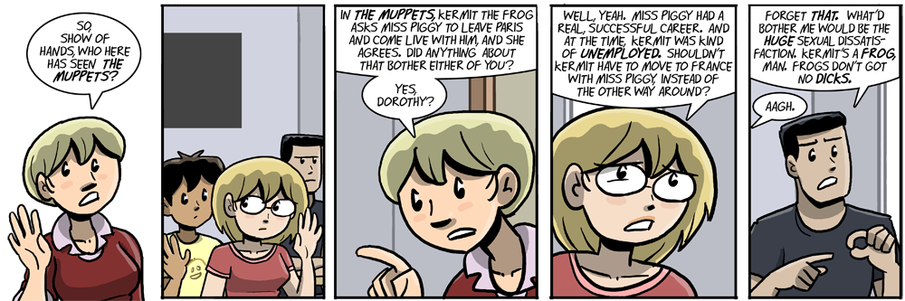 I didn’t know that frogs lacked willies until today, so today’s comic has been very educational.