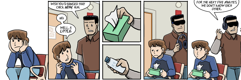 The point was cock-blocking yourself. Which is where the whole nice guy syndrome comes from. The problem comes in because nice guys are looking for a longer term relationship. They are nice to the girls and talk to them about their problems because they are basically insecure enough in themselves that they don’t believe that the girl would be interested in them except to talk to. So instead of risking the friendship on what would possibly be a rebuffed advance they don’t do anything but there for the person hoping they will see.
