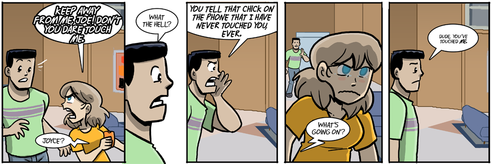 Naw. She remembered the Pastor’s Son bit, and I doubt she’d disbelieve her friends on that being the guy who dun it. Willis seems to be suggesting that she’s nervous around men in general now, and she already didn’t like Joe much.