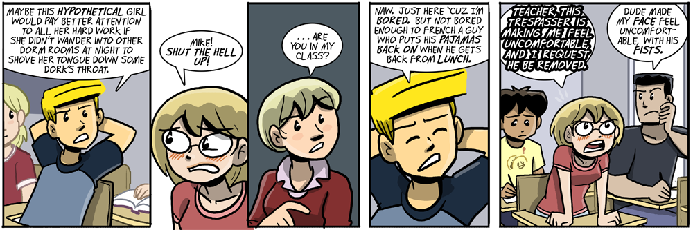 Well, she’s hardly been subtle. She was necking right in front of him. Add that to her comment here in class and was practically painting a bulls’eye on her back.