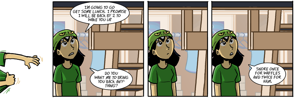 And what is the snore code for omelette? Or is it more of a yawn and stretch thingy?