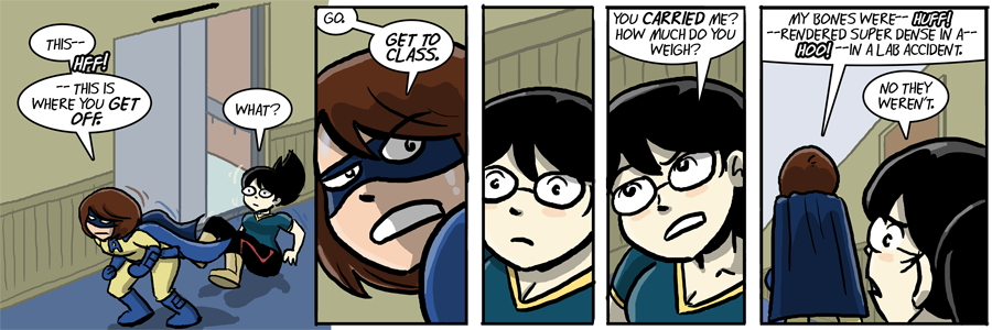 Exactly! But if Amazi-Girl had said “My frame’s ultra dense!” his secret identity would have been figured out!