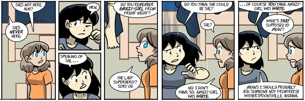 Not racist, just privileged and sheltered. Which, uh, isn’t all that unfair an accusation. Joyce probably would assume Amazi-Girl was white, even if she didn’t actually know.