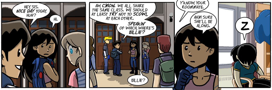 Tags: jennifer, joyce, mike, sal, walky The "Z" in the final panel is all that separates this strip from being about how Sal brutally murdered Billie in her sleep.
