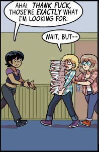 Extra! Extra! Every month at the Dumbing of Age Patreon there’s two new exclusive bonus strips — one that patrons get to vote on, and another that’s my choice! This month, we get to check in with MALAYA! Check out this strip and the backlog of hundreds of previous bonus strips at the Dumbing of Age Patreon!